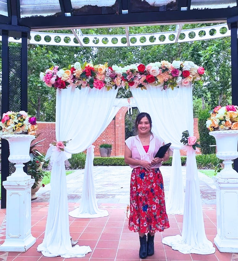 "Hello! I’m Phoebe — a bilingual wedding celebrant who believes your ceremony should sound as beautiful as it feels.